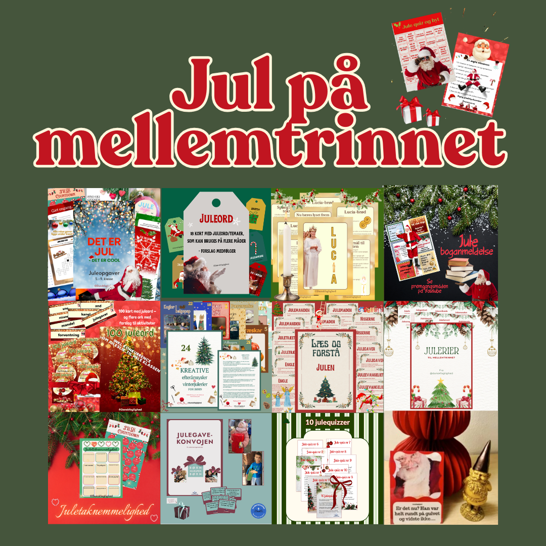 Køb Jul på mellemtrinnet i dag og få 13 færdige opgaver og aktiviteter, der giver både juleglæde og faglig udvikling i dansk! 🎅