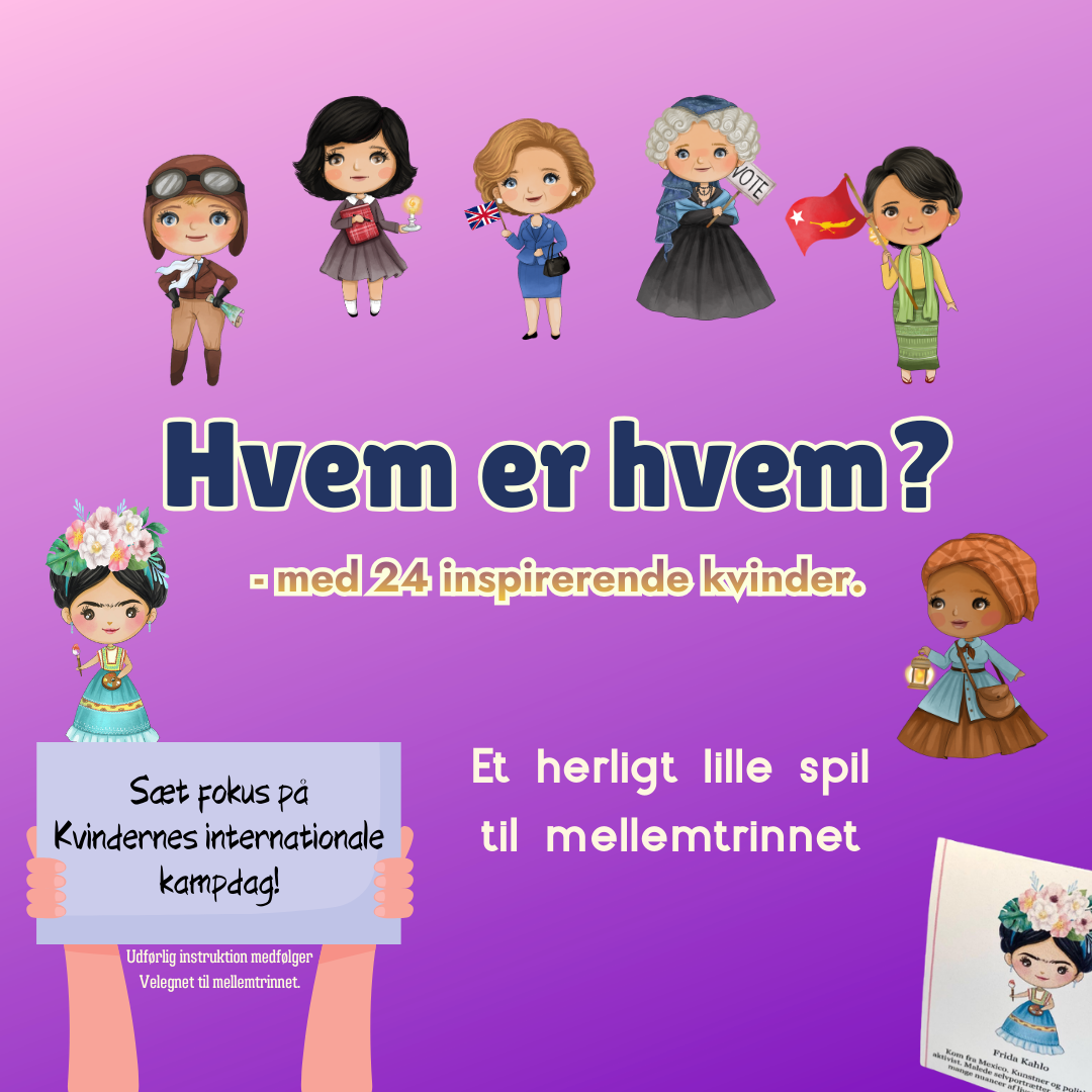 Hvem er hvem? – stærke kvinder er et undervisningsspil, hvor eleverne lærer historiske og nutidige kvinder at kende gennem leg, samtale og nysgerrige spørgsmål. Spillet kombinerer viden, dialog og deduktion og er velegnet til både faglige forløb og temaarbejde i klassen.